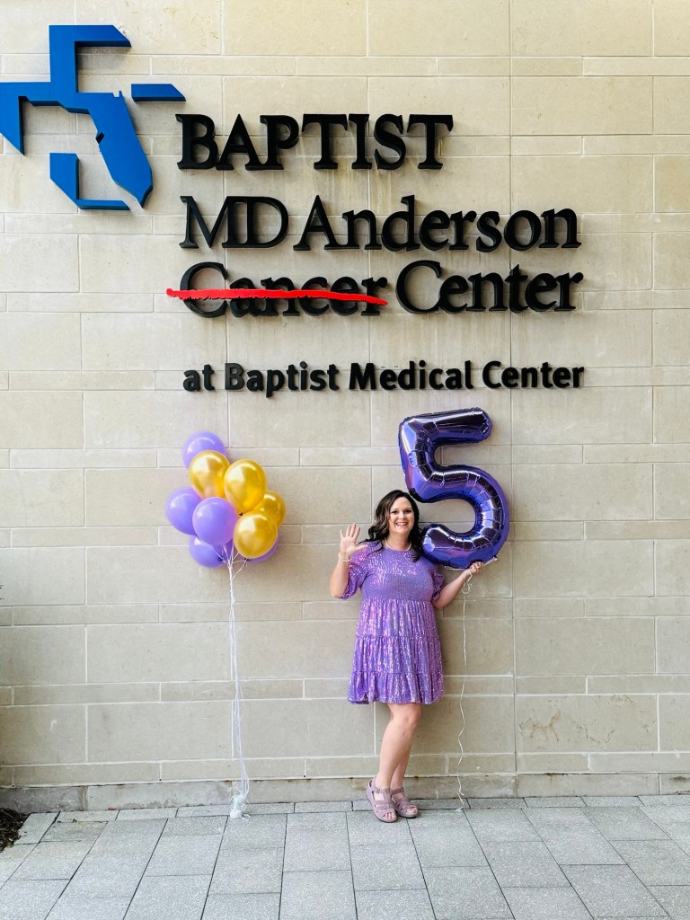 5 years! I can hardly believe I have made it here. Some days I still feel like it was yesterday that the news was being delivered and that I was in and out of the hospital for days on end every other week and in the infusion center on the off weeks. My world screeched to a halt then and ceased to exist as I had known it before. The Kristen that exissted on October 4, 2018 is gone. God has worked on me in ways that wouldn’t have been possible had October 5, 2018’s diagnosis not happened. I have a depth of relationship with God that only comes when you have nothing left and can only depend on him for literal life and healing. I have a compassion and a ministry that I never would have otherwise. Cancer has cost me some things- friendships, relationships, peace at times, health, pain; but I am so grateful that it didn’t end there! God in his infinite grace and mercy redeemed my suffering and brought beauty for ashes. Thank you, God, for bringing me to this place- 5 years cancer free.
